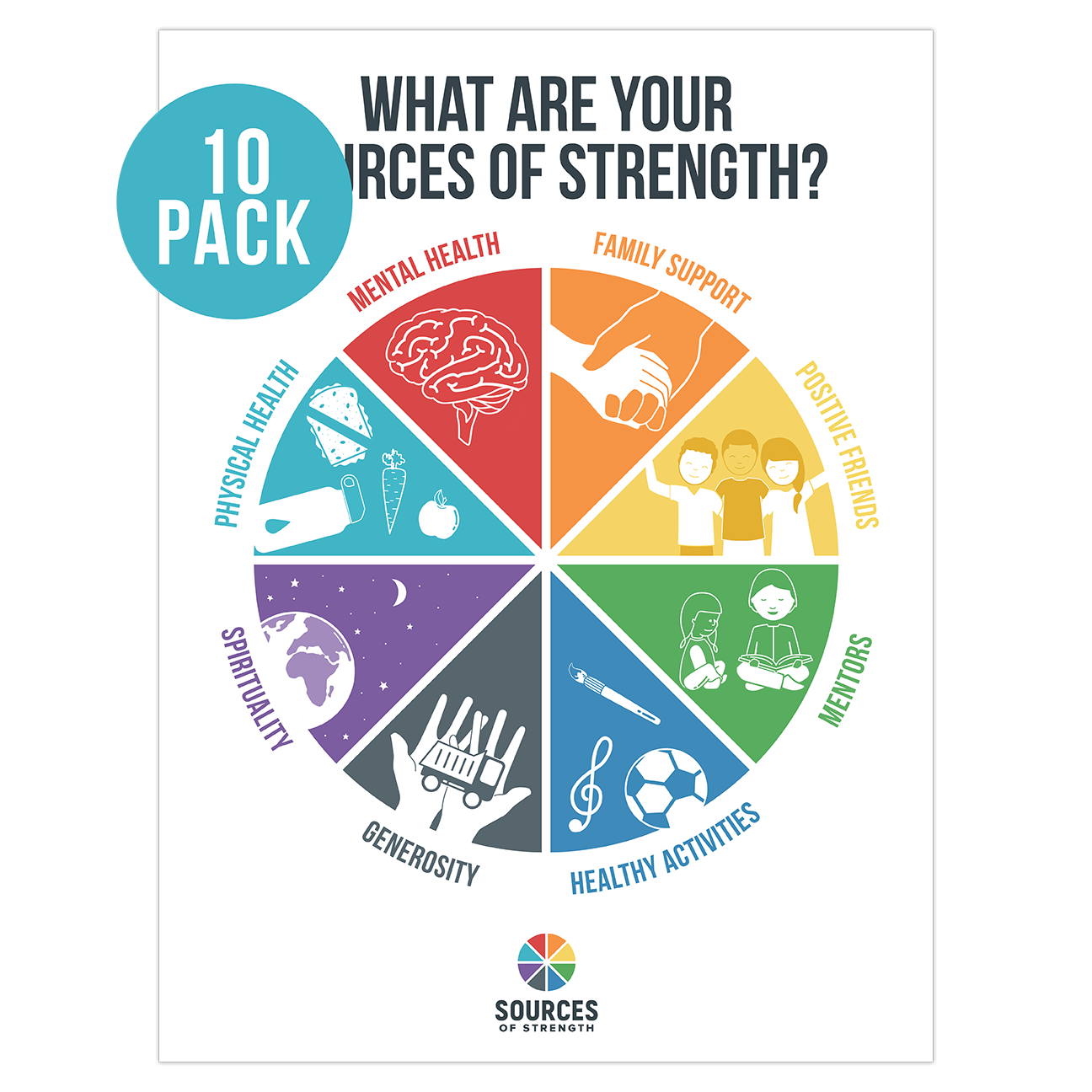 The Sources of Strength Wheel is a powerful tool, and now it is more accessible than ever! This Sources of Strength Wheel Poster includes the written names of all eight Strengths along with clear, easy-to-understand icons. This design breaks down barriers, ensuring that every member of your community can instantly connect with the concepts of Hope, Help, and Strength. It’s the same powerful Wheel, designed so that all learners can see themselves and their Strengths represented clearly.